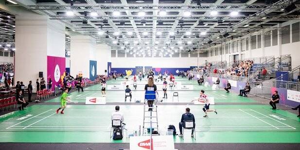 Eventbauer NÜSSLI installierte die Tribünenplätze in Form von 30 Einzeltribünen, die in 11 Hallen der Messe Berlin die passenden Zuschauerinfrastrukturen für die unterschiedlichen Sportarten bildeten. Sie boten zwischen 140 und 1450 Zuschauerplätze. Uli Born, Sales Manager von NÜSSLI, sagt dazu: «Unser Lösungsansatz bestand darin, die Anzahl der verschiedenen Tribünenlayouts auf ein Minimum zu reduzieren, ohne dabei die Bedürfnisse der einzelnen Sportarten aus den Augen zu verlieren. Mit der Entwicklung von ‹nur› sieben Tribünenlayouts ist es uns gelungen, sowohl die engen Budgetvor-gaben Tribut einzuhalten als auch den Planungs- und Logistikaufwand zu reduzieren, die Montage zu vereinfachen und Abläufe zu standardisieren.»
