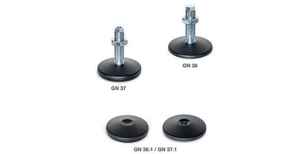 Die neuen massiven Maschinenfüße des Normteilspezialisten Elesa+Ganter eignen sich insbesondere für große und schwere Anlagen und Maschinen. Der Maschinenfuß GN 36 stellt durch die Krafteinwirkung der Maschine eine sehr stabile und belastbare Verbindung zwischen Spindel und Fuß her. Dabei ist die Spindel mit der Fußplatte nicht verbunden, beim Aufstellen zentriert sich diese durch den Radius am Auflagepunkt selbstständig. Die blau verzinkte Stahl-Spindel ist mit Feingewinden zwischen M20x1,5 und M42x2 zum genauen Nivellieren erhältlich und wird mit der passenden Kontermutter geliefert. Die geschmiedete und bis zu Ø200 mm große Stahl-Fußplatte verfügt über eine kunststoffbeschichtete, schwarz-matte Oberfläche und ist in drei verschiedenen Formen bestellbar.
