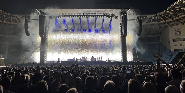 Bei ihrer Planung im Vorfeld arbeiteten die beiden mit Solotech zusammen, um das Systemdesign für die Stadiontour 2022 der Killers fertigzustellen. Das Design besteht aus 16 x GSL8 und 4 x GSL12 Lautsprechern als Hauptarrays links und rechts, hinzu kommen 10 geflogene SL-SUBs pro Seite und 14 x GSL8 und 2 x GSL12 Lautsprecher links und rechts als seitliche Arrays. Am Boden werden sechs SL-GSUBs Groundstacks jeweils 2-hoch eingesetzt. Die Anordnung der 21“-Treiber erweitert das charakteristische kardioide Abstrahlverhalten des Systems bis hinunter auf 30 Hz. „Das Low-End ist in Stadien immer ein Problem“, so Kaiser, „aber die Kontrolle hier mit den geflogenen Subwoofern und den G-SUBs ist einfach fantastisch.“