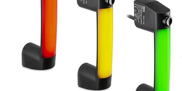 Die RGY (rot, grün, gelb) LED Streifen aus Polycarbonat können so konfiguriert werden, dass jede Farbe einen anderen Status der Maschine anzeigt.