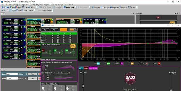 Mithilfe des Bass Shapers kann eine Zielkurvenanpassung und ein besseres Timealignment zwischen Line Array und Subwoofern realisiert werden. Die Bedienung des Bass Shapers ist mit nur drei Schiebereglern möglich. Endlich werden so die komplexen Themen Bassüberhöhung und Zielkurven enorm vereinfacht.