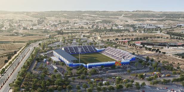 Das Stadion wird in Systembauweise auf dem Nordparkplatz der Expo Zaragoza errichtet. Die Bauweise mit wiederverwendbaren Systembauteilen ermöglicht nicht nur eine sehr kurze Bauzeit, sondern auch die spätere Demontage und Wiederverwendung der Materialien, was zu einer nachhaltigen Planung beiträgt. Die Projektverantwortlichen sind zuversichtlich, dass die Bauarbeiten Anfang nächsten Jahres beginnen und das Stadion nach sechs Monaten und rechtzeitig zum ersten Heimspiel im August 2025 fertiggestellt sein wird. Zu den geplanten Einrichtungen im Stadion gehören unter anderem Ticketverkaufsstellen, ein Merchandising-Shop, ein Gastronomiebereich sowie Kabinen für Radio- und Fernsehkommentatoren. Darüber hinaus wird ein angrenzendes Gebäude mit Umkleidekabinen, Sanitätsraum, Dopingkon-trollraum, VIP-Lounges und Ruhezonen entstehen, um ein umfassendes Angebot für die Fussballteams und die Besucherinnen und Besucher zu gewährleisten.