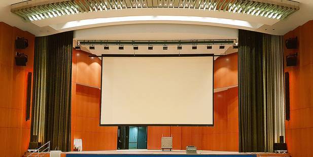 Ziel war eine qualitativ hochwertige, zukunftsfähige Beschallung. Um einen optimalen Klang auf allen Plätzen zu garantieren, erstellte das Planungsbüro HF-Medientechnik im Vorfeld eine Raumakustiksimulation mit EASE und testete verschiedene Lautsprecher. Kriterien waren neben einem natürlichen Klang insbesondere eine gleichmäßige Abdeckung des gesamten Saals mit der Empore sowie eine hohe Sprachverständlichkeit. Gleichzeitig musste das Lautsprechersystem so kompakt sein, dass – bei großen Produktionen – der Einsatz von mobilen Arrays im Umfeld der Bühne ohne Einschränkungen möglich ist. Hier bewährte sich die digitale Beam-Steering-Technologie von Renkus-Heinz. Mit der RHAON II System-Manager-Software wurde unter Nutzung der Raumdaten automatisch das optimale Beam-Design der Lautsprecher erstellt. Von einer Lautsprecherzeile können so definierte Beams gezielt in unterschiedliche Richtungen gelenkt werden. Dies führt zu einem besonders homogenen Schallfeld. Störende Reflexionen werden vermieden, da kritische Areale wie höhere Bereiche der Wände und die Decke nicht beschallt werden.