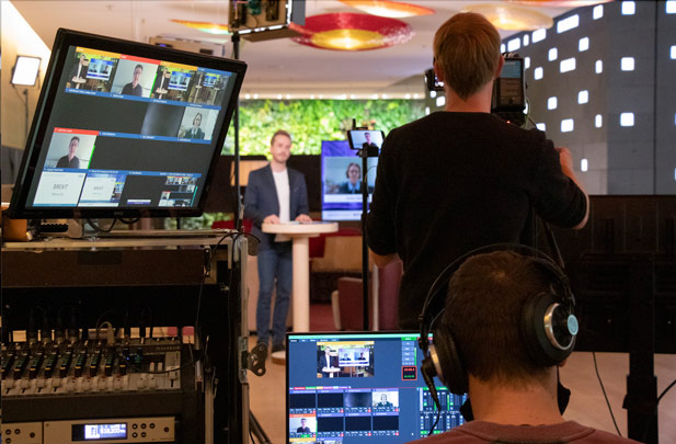 Ein neues Betätigungsfeld tut sich auf: Viele Studios wittern ihre Chance und bieten Unternehmen Räumlichkeiten und technische Ausstattung an. Im Bild: Aufzeichnung für die Denzel AG.