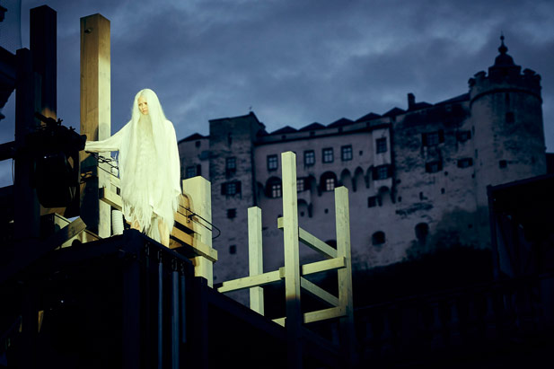 Für eindrucksvolle Effekte sorgt zudem die Einbindung des Doms direkt hinter der Bühne. Als plötzlich die Glocken im Kirchturm beginnen zu läuten, geht die Anwesenheit der Figur des Todes dem Publikum unter die Haut. Auch die Lichteffekte in den Fenstern und Toren des Doms tun ihren Dienst. Einzigartig für den „Jedermann“ sind die traditionellen Rufe aus nahegelegenen Fenstern, die zwar nicht sichtbar, aber durchaus hörbar sind, und das Schauspiel zu der Besonderheit machen, wofür das Publikum seit einem Jahrhundert nach Salzburg pilgert.