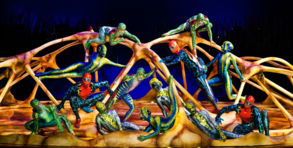 Technische Akrobatik Evolutionsgeschichte einmal anders. Totem nimmt sein Publikum mit auf eine Reise durch die Entwicklung von Amphibien zu Säugetieren, vom Neandertaler zum modernen Menschen.