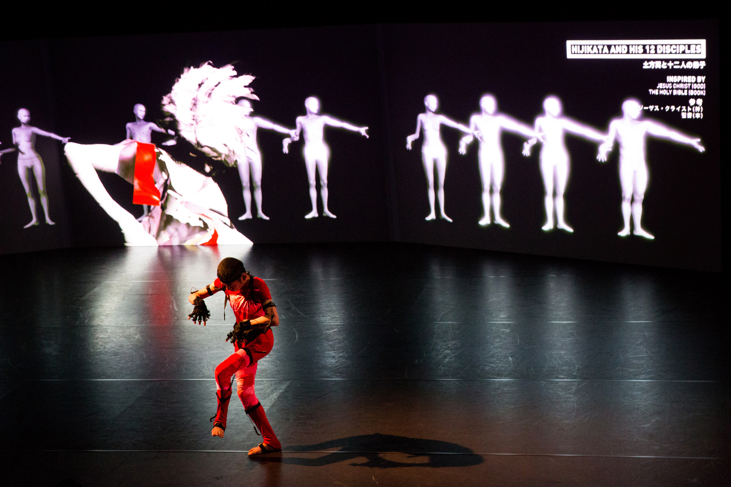 Für die Performance „UnBearable Darkness“ von Choy Ka Fai werden die Bewegungen des Tänzers auf der Bühne als 3D-Modell an die Wand hinter ihm projiziert. Dazu steckt er in einem Anzug, der seine Bewegungen erkennt und per stabiles WLAN an einen leistungsfähigen Computer sendet. Dieser wiederum rechnet sie in Echtzeit in einem 3D-Rendering-Programm um und wirft das Ergebnis mit einem HD-Projektor auf die Wand. Generell sind heuer einige HD-Projektoren zum Einsatz gekommen. Das sind laut Grundhoff keine großen technischen Neuigkeiten, genauso wenig wie die Nebelwerfer – es ginge vielmehr darum, mit der bestehenden Technik und ein wenig Kreativität die besten Performances zu ermöglichen.