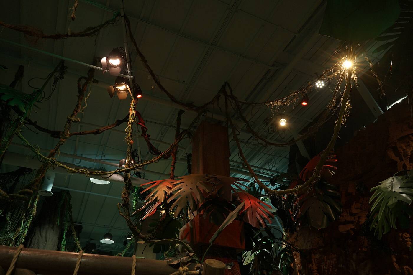 Die Grundbeleuchtung der Szenerien übernehmen die LED-Par-Modelle Root Par TW und Root Par 6. Für die Simulation von natürlichem Tageslicht sorgen die Studio Par in Kombination mit den Theater-Spots TS 60 W RGBW und TS 100 WW. Um die wechselnden Tageslicht-Situationen zu simulieren – die Abenteuerreise führt die Teilnehmer unter anderem durch das verschneite Finnland und den Dschungel Costa Ricas – erwiesen sich die STUDIO PAR DTW LED-PARs mit variablem Weißlicht von Tungsten bis Kaltweiß als besonders geeignet. Für Effekte, wie die Simulation eines fliegenden Jets, setzte Darkside Audio Visual auf die LED-Bars TriBar 200 IR, die in sechsfacher Ausführung außerhalb der Flugzeugkabine angebracht sind.
