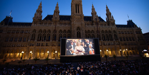Alle Blicke sind auf die Leinwand gerichtet Das 33. Film Festival auf dem Wiener Rathausplatz ging am 3. September 2023 erfolgreich zu Ende. Die Leinwand ist für die unterschiedlichen Licht- und Wetterverhältnisse optimal konzipiert.